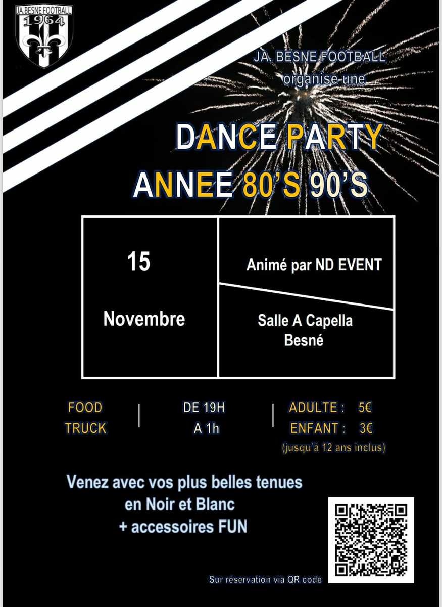 La JA Besné Football a le plaisir de vous inviter à sa grande DANCE PARTY spéciale années 80–90