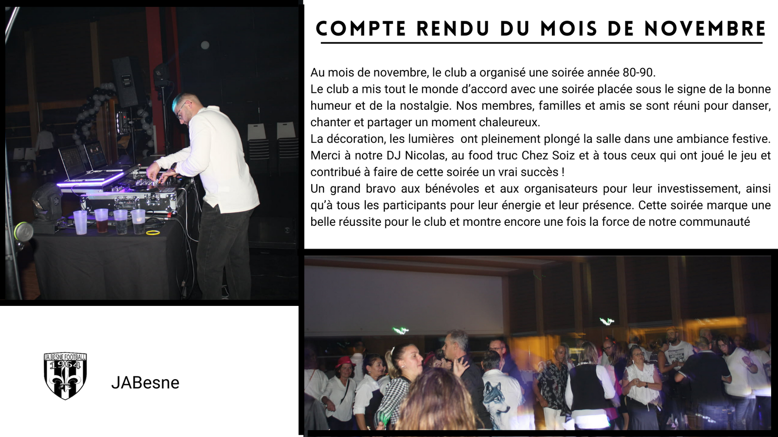 Au mois de novembre, le club a organisé une soirée année 80-90.