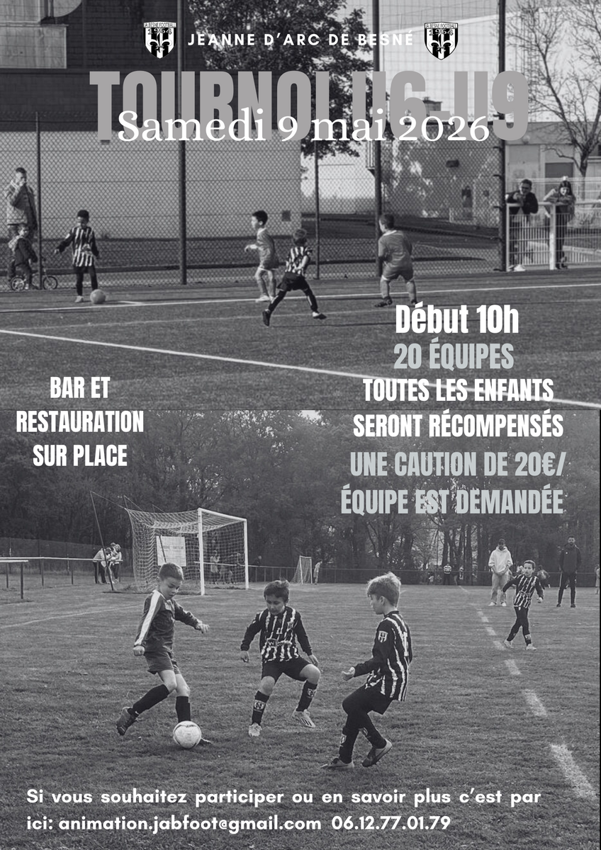 Le club de la Jeanne d’Arc de Besné organise son tournoi jeunes catégories U6 / U9 le samedi 9 mai 2026.
